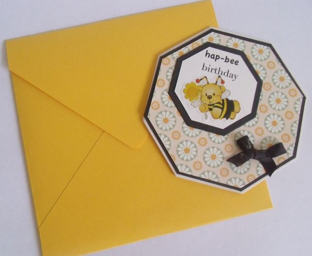 ReplyDeleteThe octagon shape is perfect for the bee! What a very cute and sweet card! Thanks for topping your sundae with us at Paper Sundaes this week!
